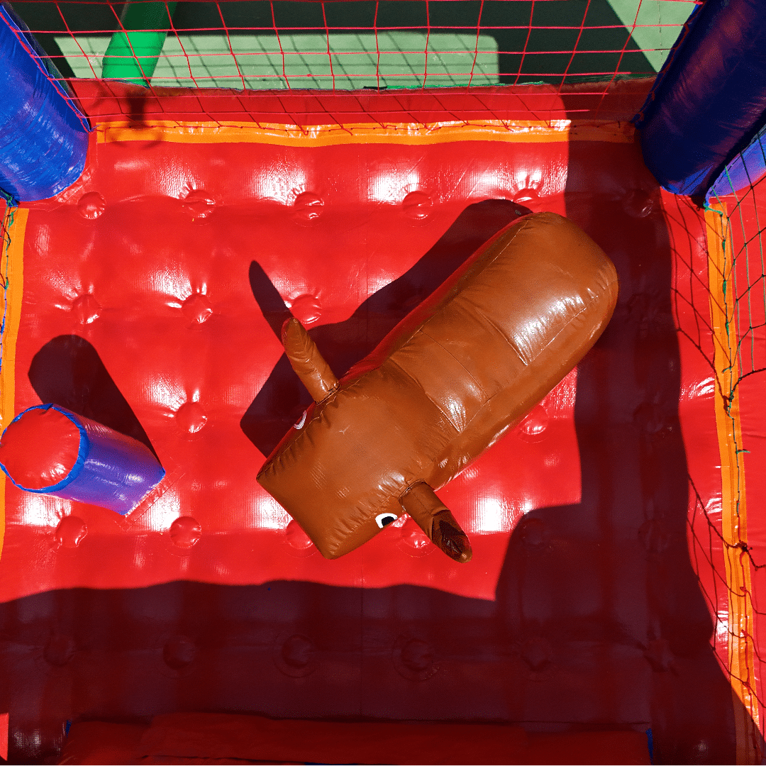 Por ser um brinquedo inflável, requer uma tomada para o funcionamento contínuo do motor inflador.